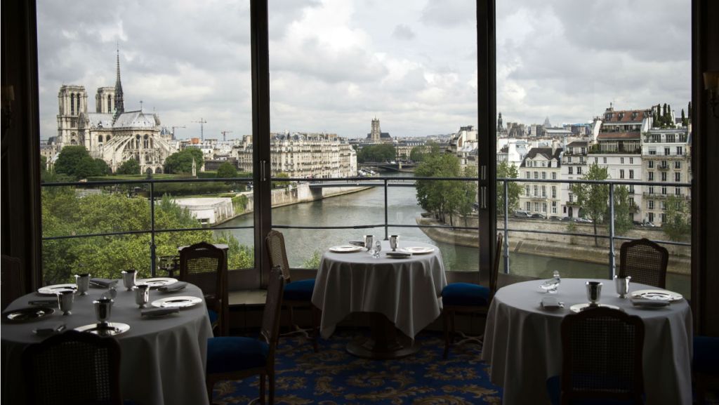 Subimos a la sexta planta, nos instalan en una mesa con vista al Sena y a Notre-Dame. Empezamos a consultar el menú, cuando oímos gritar: