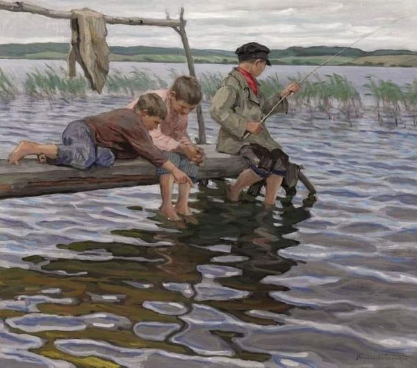El ancho y pacífico Volga fluye sus tranquilas aguas en medio de la estepa. Dimitri y su amigo Igor, que se refresca los pies en el agua, observan los peces que se acercan para ver si hay algo que comer. Se instalan temprano por la mañana en un pequeño pontón rodeado de juncos. Su amigo Vassili, que es mayor, vigila la caña de pescar que ha lanzado en este pequeño rincón donde abundan los peces.