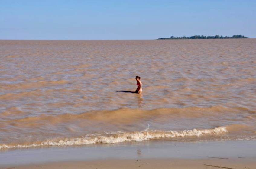 La corriente se hizo más fuerte y el paisaje iba cambiando: las orillas del río estaban cada vez más lejanas y se podía vislumbrar una cantidad desmesurada de agua azul celeste.