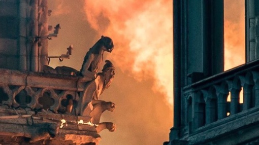 Vemos humo, luces rojas y amarillas que aparecen por momentos en la aguja central. En pocos instantes todos llegan, clientes, camareros, cocineros, y se aglutinan alrededor de nuestra mesa, pegados a los grandes ventanales. El incendio se propaga rápidamente a la cubierta. En el momento en que el tejado se hunde, se escucha un grito de estupor que la gente no puede reprimir. Después se derrumba la aguja, pero cuando se ve que el fuego ha llegado a la torre norte no creen lo que no se puede negar, casi un siglo de historia podría convertirse en humo y cenizas.