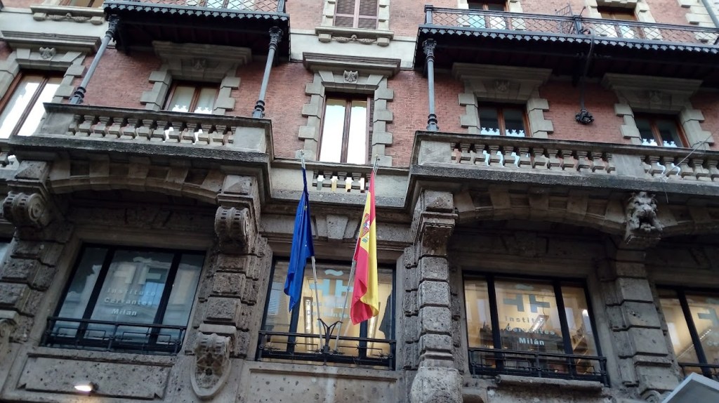 Aprendimos un montón de canciones españolas durante aquel curso del profesor Antonio Blanco Tejero, en nuestro antiguo Instituto Cervantes de Milán. El de la Avenida Dante, por supuesto. Después de lograr el 2012 el diploma DELE B2, conquistado gracias a mi tenaz voluntad de autodidacta, quise absolutamente participar en un curso y, como la música siempre me ha gustado, el título “Canta con nosotros” me inspiró. Fue entonces cuando me enamoré del Instituto Cervantes, que en unos pocos años se convertiría en mi “segunda casa”. Por eso ahora me pongo triste cuando, caminando por la avenida Dante, paso por delante del edificio en reestructuración donde, en vez de profesores y estudiantes de español, se ven obreros y albañiles, y la bandera de España roja y amarilla ya no está.