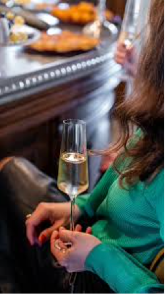 Yo no pude oír su respuesta, pero después de unos minutos vi al camarero volver, llevando con desenvoltura profesional una bandeja con una botella de champán y un solo vaso.